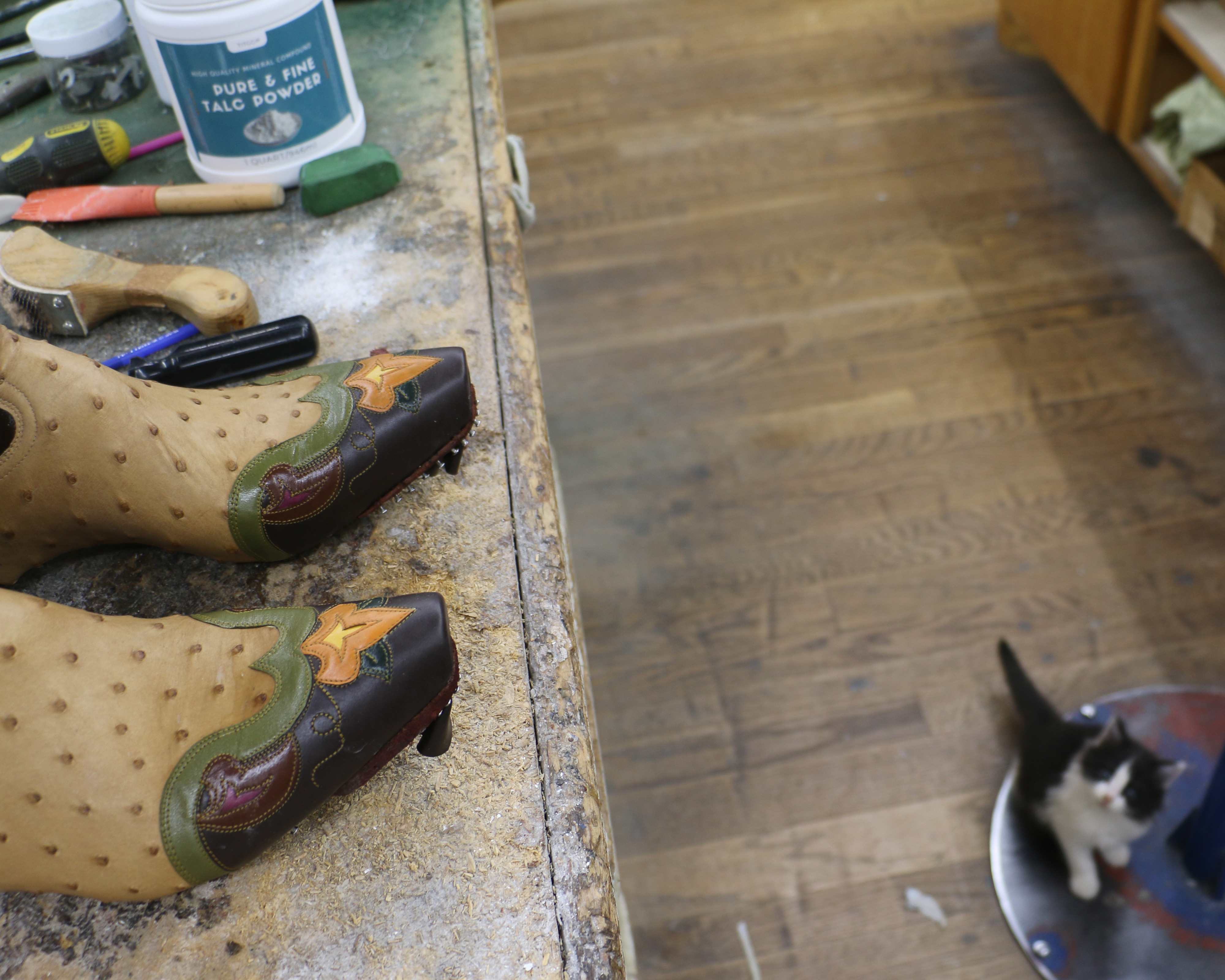 I’ve been out of the shop for a couple of weeks and I’m relieved to report that I still know how to make boots. Also, I have company today. It’s a tiny, whiny, loud little tyrant disguised as a kitten.