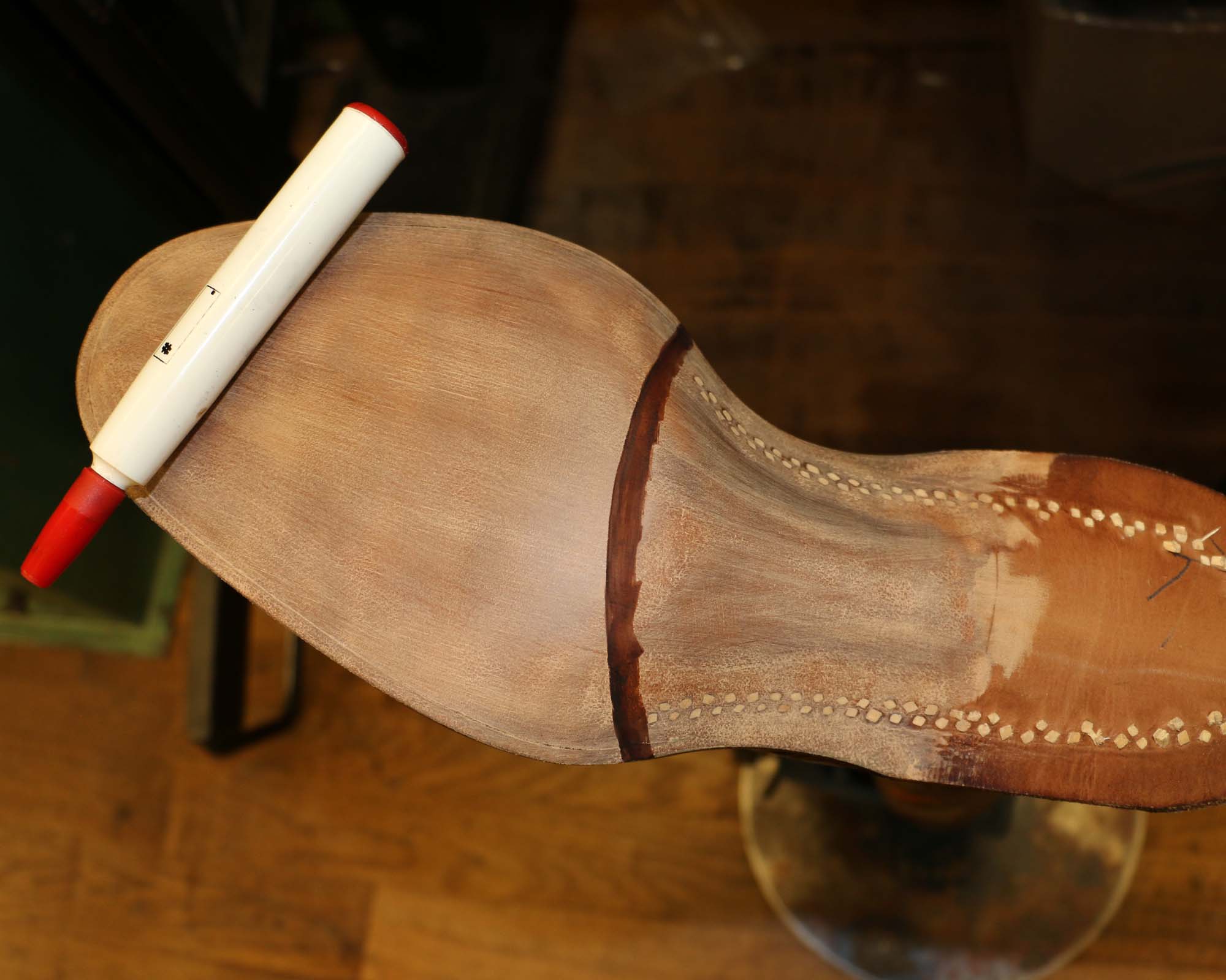 I’ve applied burnishing ink over the brown dye and added another coat of bottom stain.
