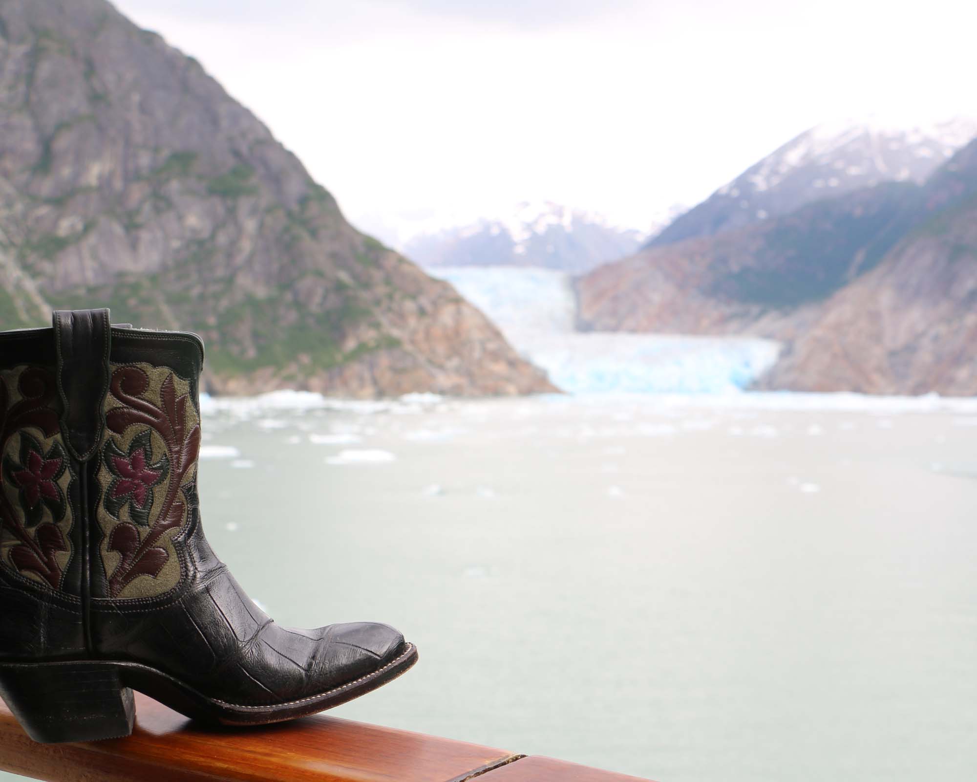 My boots got to see a glacier yesterday. Don’t worry–Dale was holding them so they wouldn’t fall!