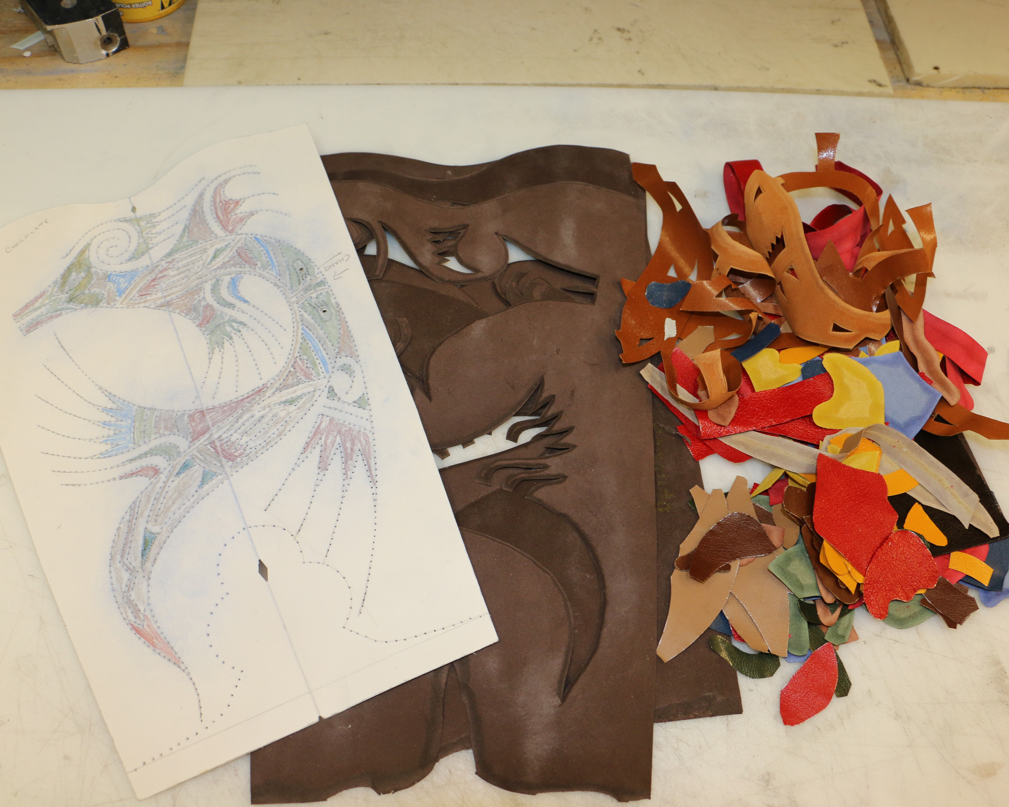 Raise your hand if you believe that this pile of oddly-shaped, multicolored scraps will magically transform into a water serpent boot top tomorrow.