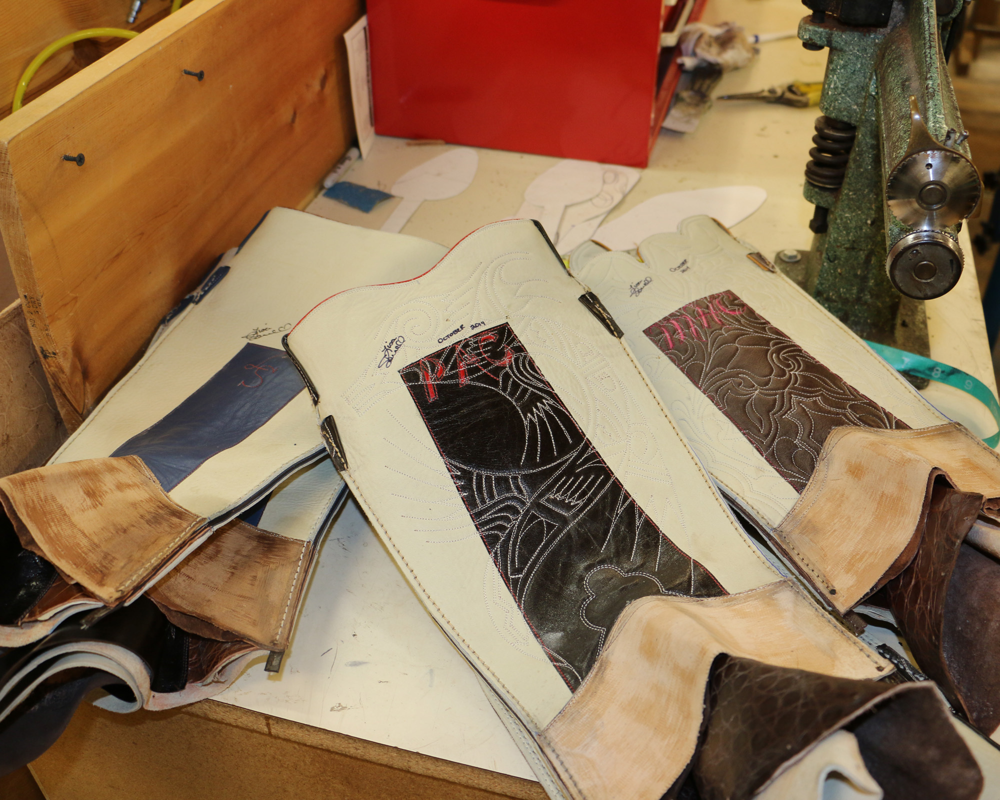Three pairs of boots are successfully side seamed!