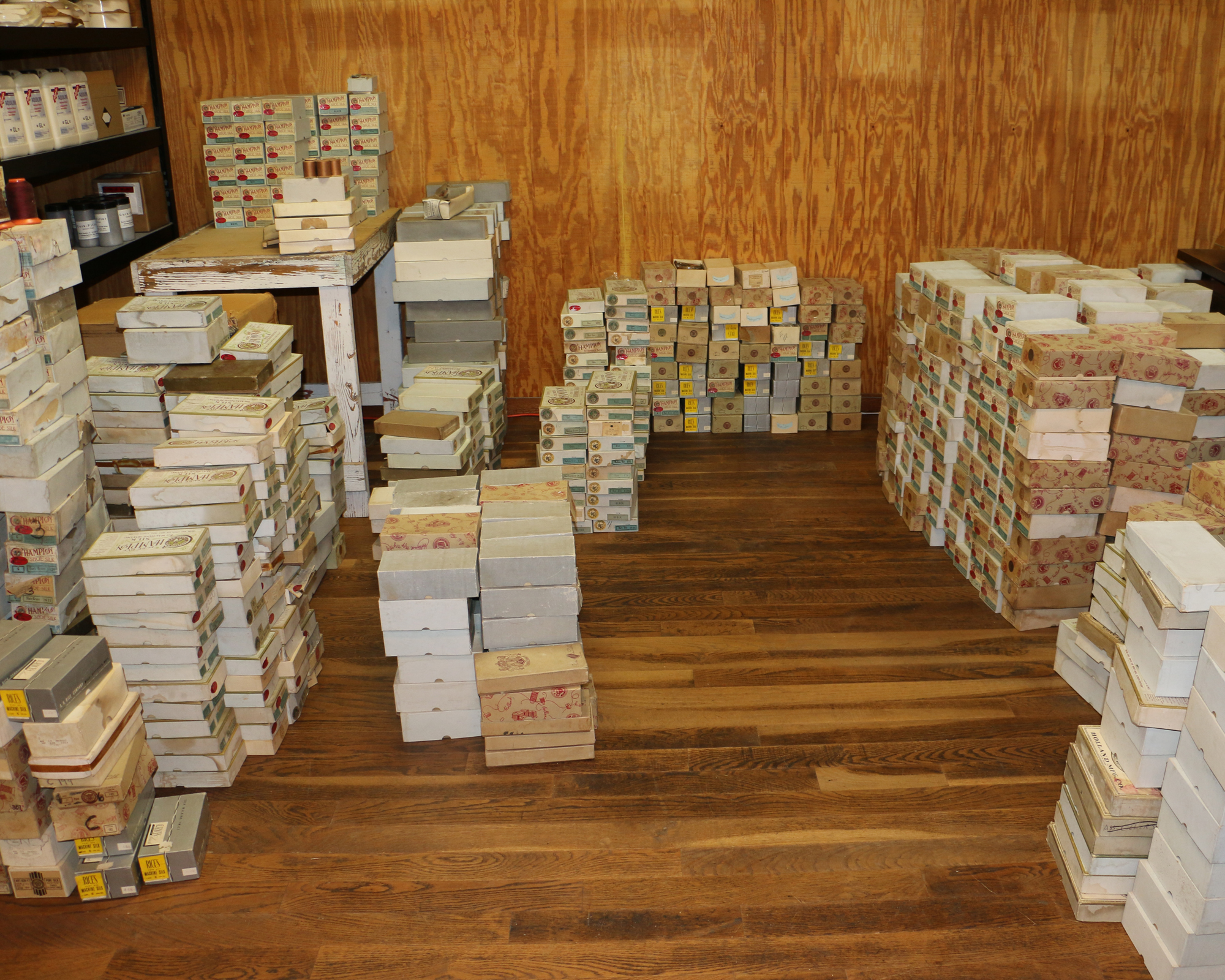 If you should visit my shop right now, here’s what you would see in the front room. Two pallets of silk thread have been unloaded and sorted by thread size. Shelves have been ordered and my oldest daughter Morgan has accepted the job of sorting it by color and placing it on shelves when they arrive.