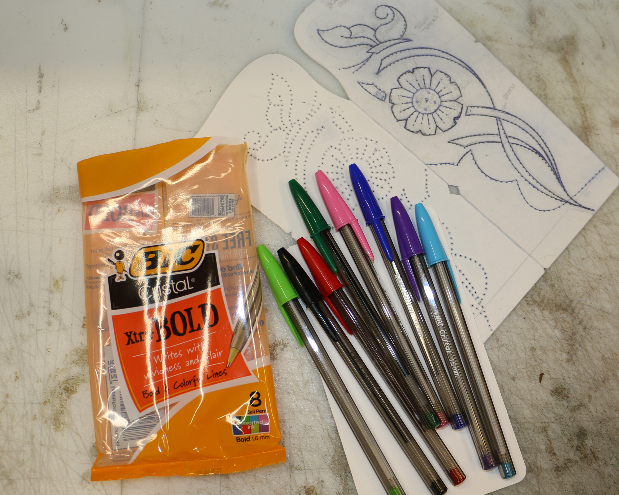 Whenever I draw a new design, I like to go over it and make any final alterations with a different color of pen so I can see the adjustments. I’ve only ever used black and blue ink. Now I’ll have lots of color choices!