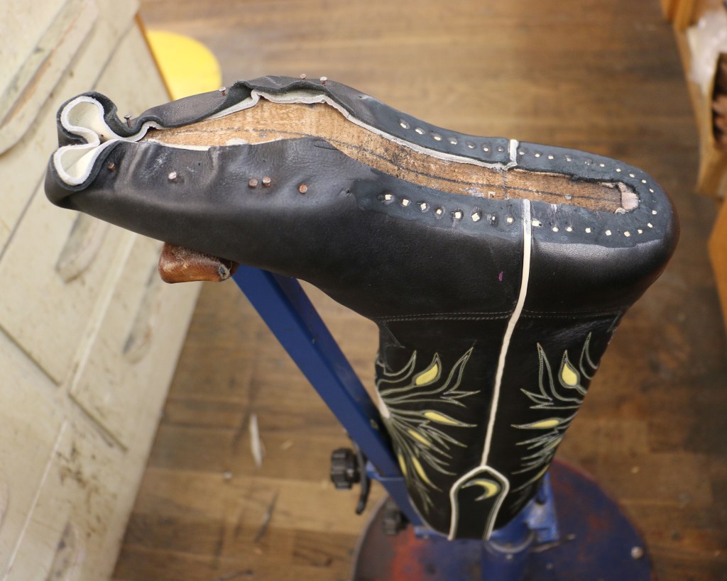 I’ve decided that my delight in ensuring every step of the boot making process is precise is not due to some sort of compulsive desire for perfection. It’s laziness. I took a tiny bit of extra time to make it nice and neat at this point so that later when I lay the soles, there will be a defined and smooth place for them to go. Putting on the soles will be easy and there won’t be ugly gaps or spots where they don’t want to stick.