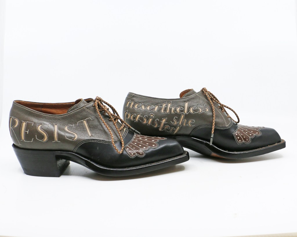 > customboots posted: ” I started making these shoes when Ruth Bader > Ginsberg died and it’s taken me this long to finish them. On the outside of > the shoes are the words “DISSENT” and “RESIST.” The insides say > “nevertheless she persisted” and “when there are nine.” ” >
