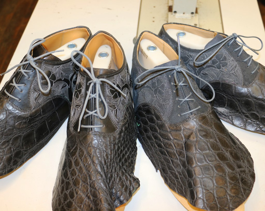 Surprise! There are two pairs of these shoes! I couldn’t decide if I wanted the design to be stitched on the smooth side or the fuzzy side of the leather so I’m making a pair of each. Which one do you like best?