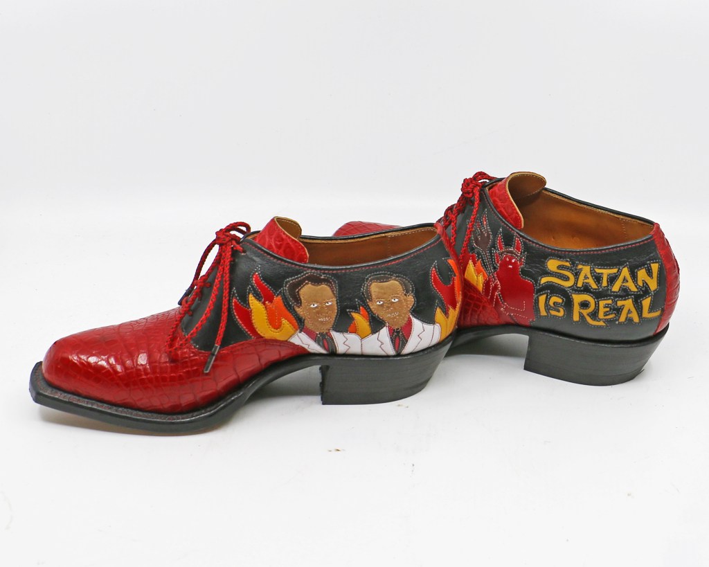 Introducing my “Satan is Real” shoes with a bonus mini portrait of Ira and Charlie. These shoes are *mine*. I know they’re an odd little thing to put out into the world but I love them, because I’ve heard and lived these words.