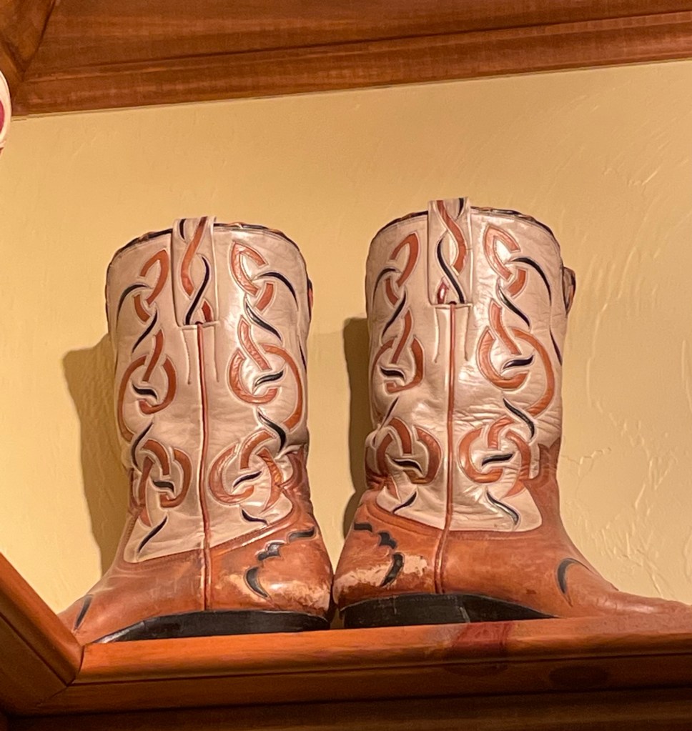 I visited a friend this evening and saw an old pair of my boots in his collection. I made these for myself a long time ago and eventually gave them to him for display because he’s a boot collector. I’ve only made this design the one time.