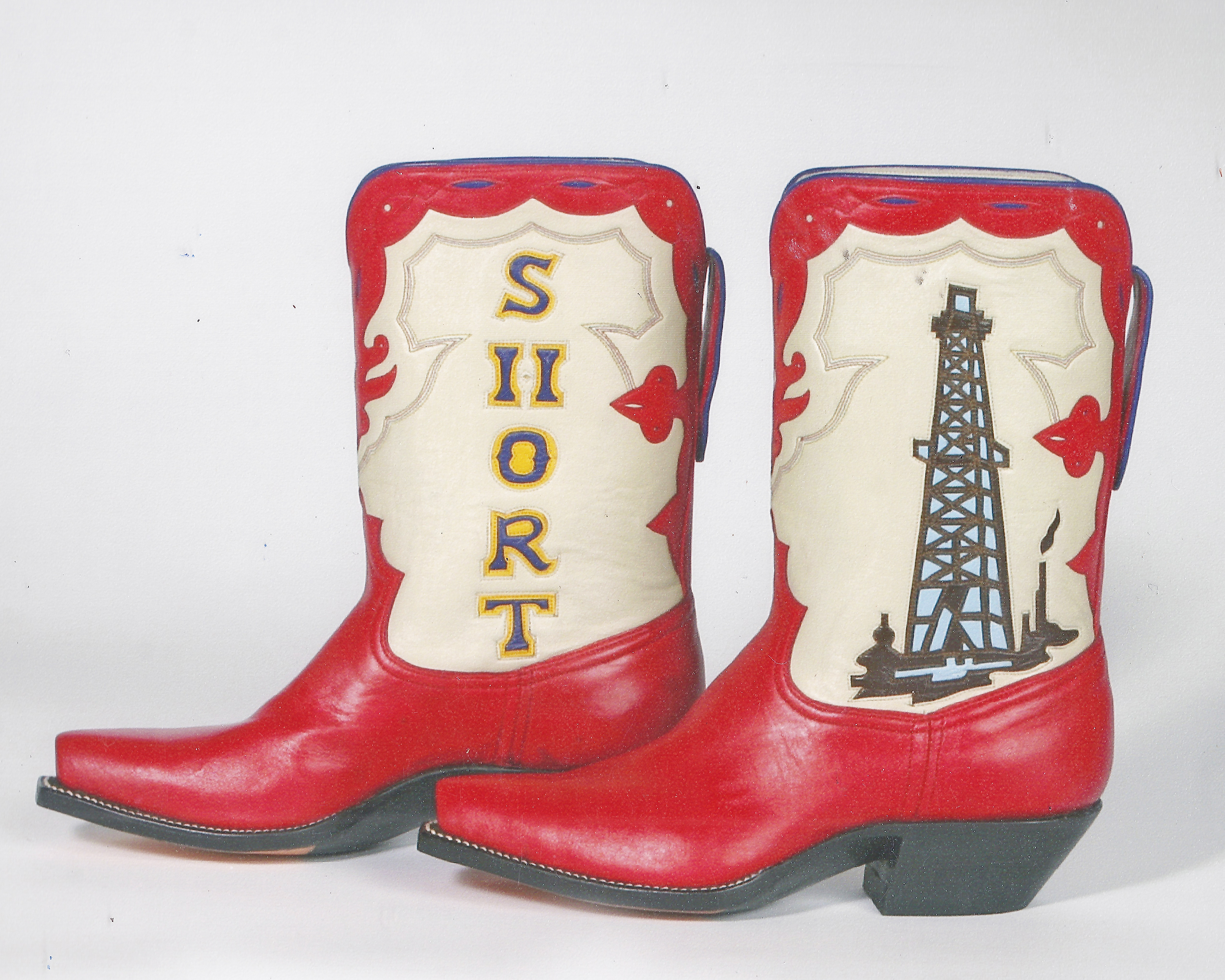 These boots are based on an old Olsen Stelzer design. When I was measuring the lady she said, “I want a pair of boots with an oil derrick on them, because my family was in oil.” I thought, “That’s cool for you; my family was in poverty!” but I was smart enough to not voice that thought. 🤣
