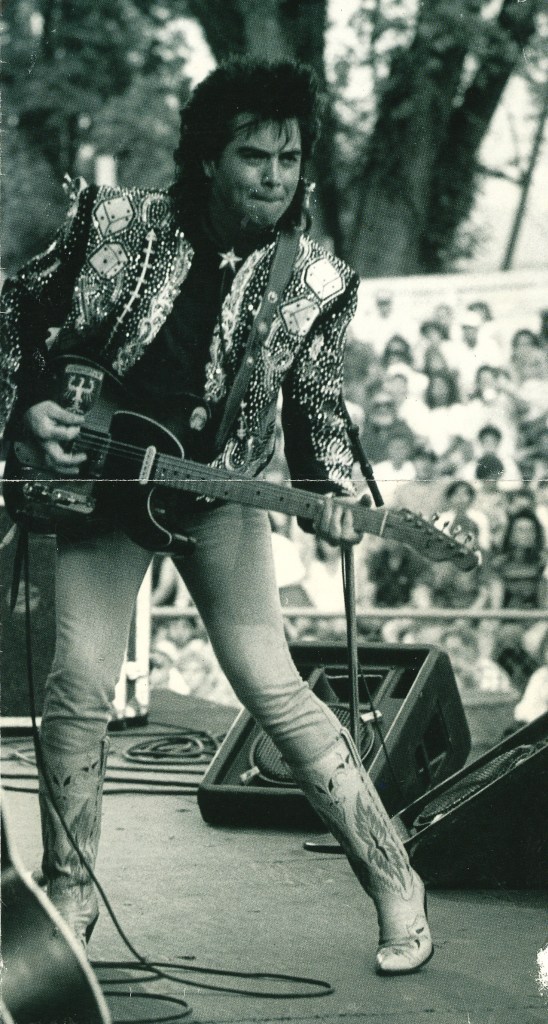 A long, long time ago I worked for an old boot maker named Jay Griffith, and Jay made boots for Marty Stuart, who was an up and coming young country singer. Marty commissioned a pair of pale yellow cowboy boots with purple inlay and stitching, and I did all of the inlay and stitch work on them. You can see these boots in the liner notes to Marty’s “This One’s Gonna Hurt You” album, although the photo is black and white.