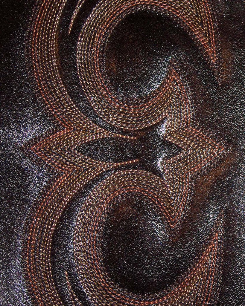 Some boot makers start with the outermost row, but I was trained to begin with the innermost row. It really depends on what style of design you’re doing — with this one, accurately defining the unstitched space in the middle is crucial, so it makes sense to begin on the inside.