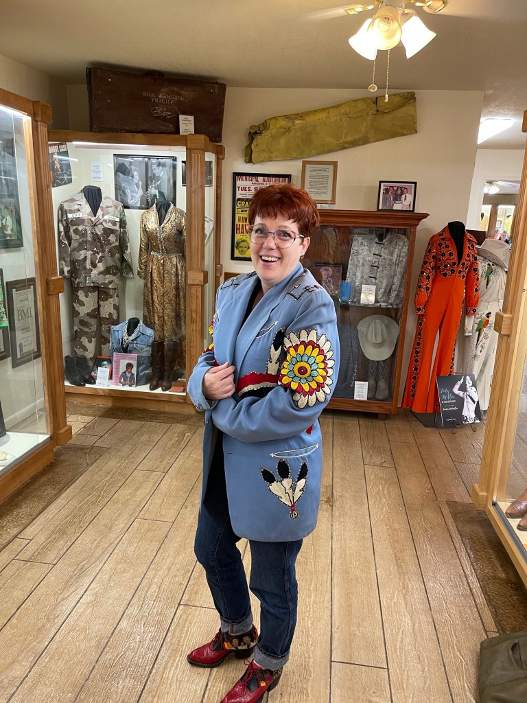 This is what my face looks like when I spend hours at the Country Music Museum in Brady, Texas, and then I GET TO TRY ON JACKETS that belonged to Ray Price, Cowboy Copas, and Porter Wagoner!!!