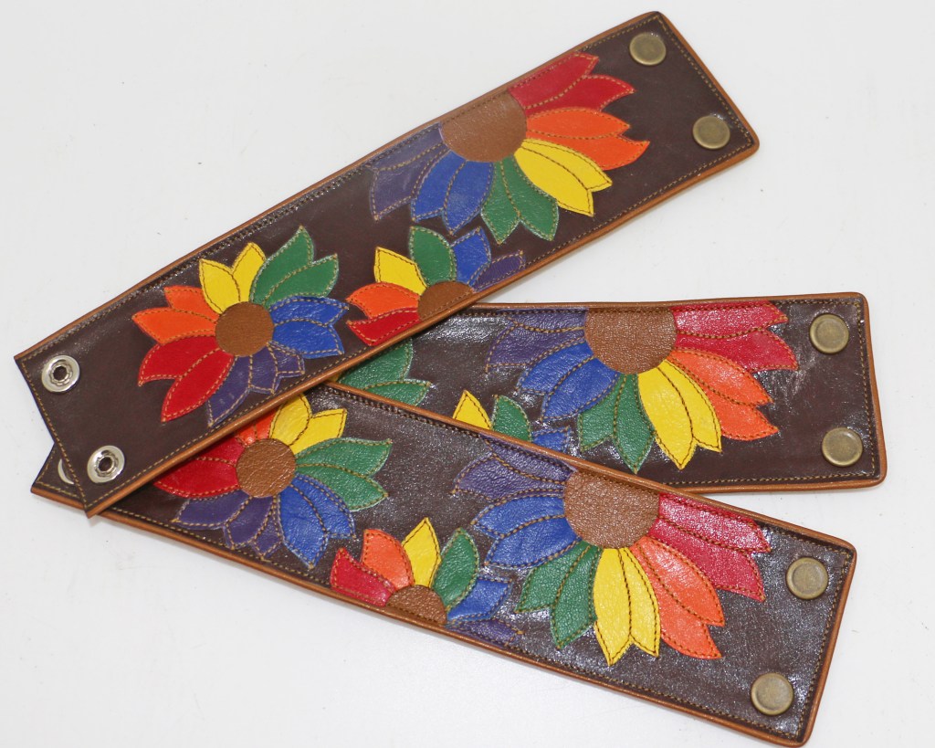I’m preparing for a show and trying to get several leather bracelets made for my booth. I made these three today; they took longer than normal because of all the different colors.