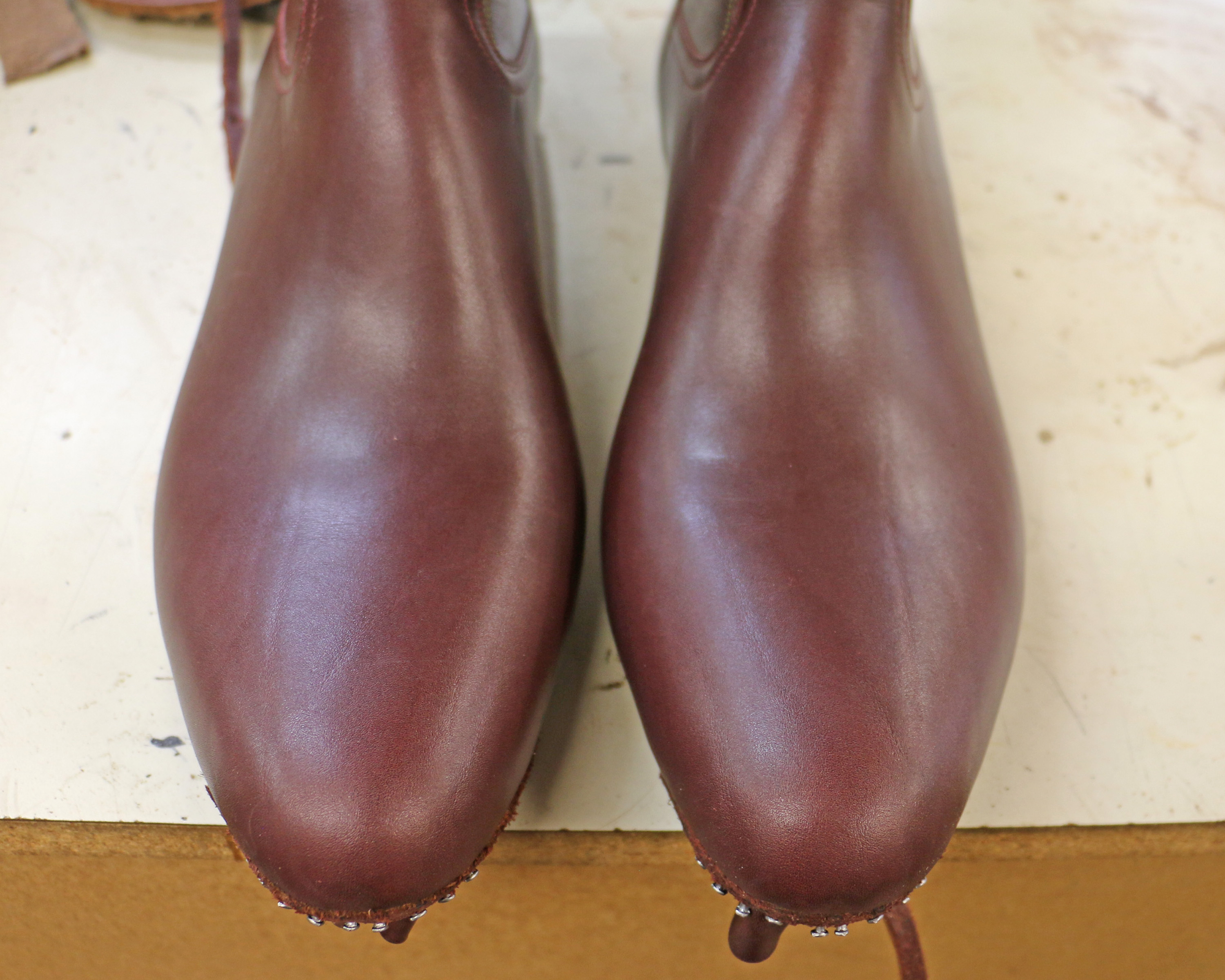 Dale and I are flying to Chicago this weekend for the Shoe Service Institute of America (SSIA) show, and he decided the pair of boots he wanted to wear were the ones in desperate need of a shine and new rubber heel caps.