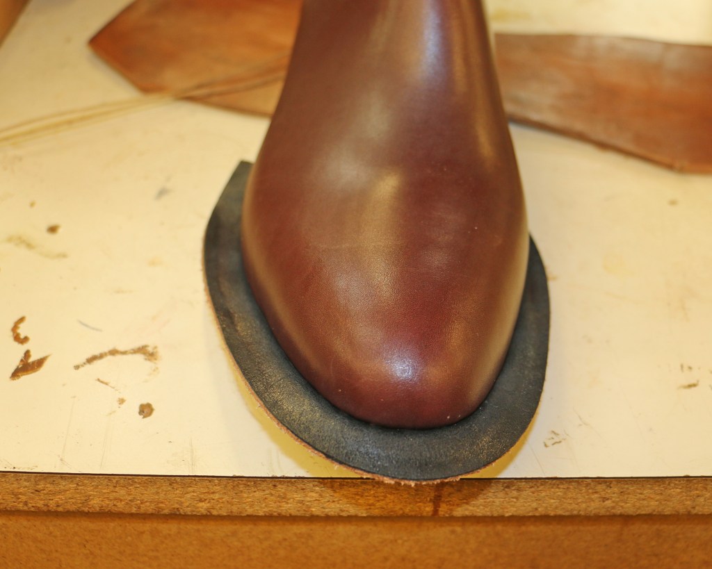 This boot tested me. I pulled a bristle off, broke my awl, and discovered I’d gotten one stitch too high after I was already two stitches past it. But I fixed it all, successfully completed the job, and I still like inseaming.