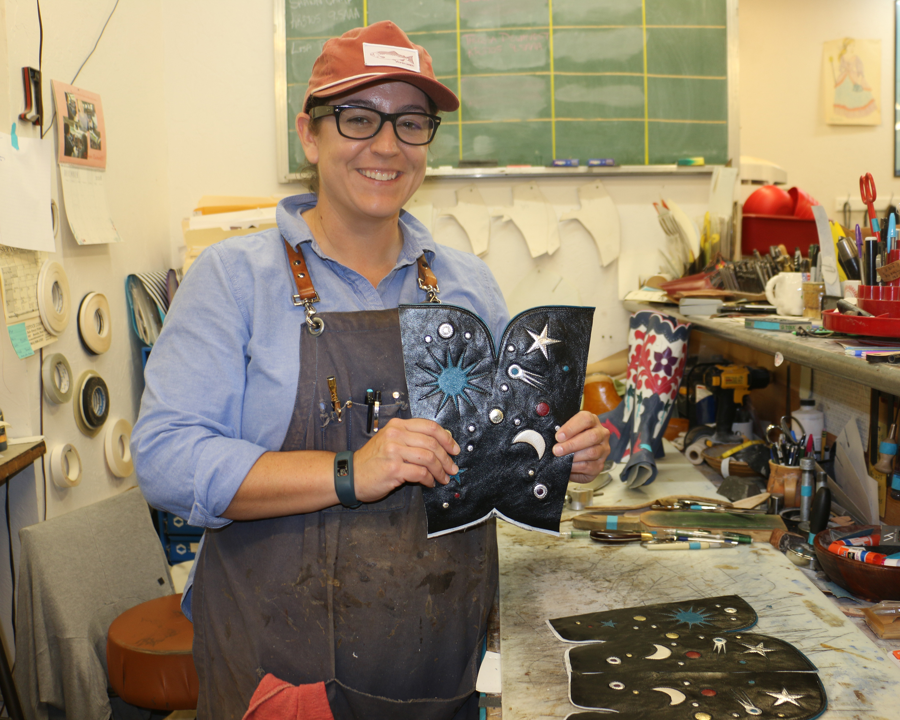 Many long hours of stitching later, the starry night sky boot tops are completed and she has announced she will never again do a design with multiple small circles.
