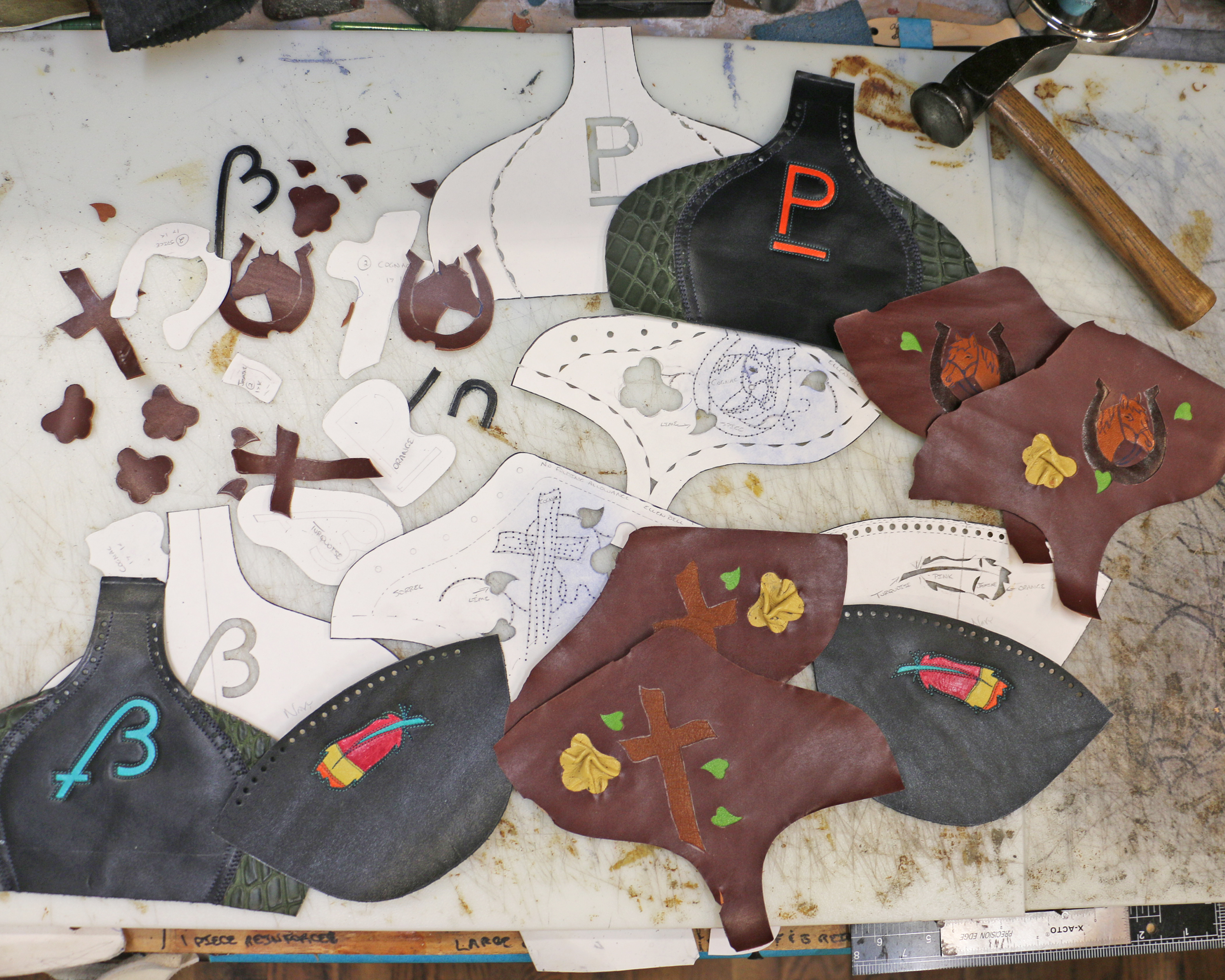 Here’s a little lace-up shoe I’ve started. It took lots of patterns and pieces to get to this stage!