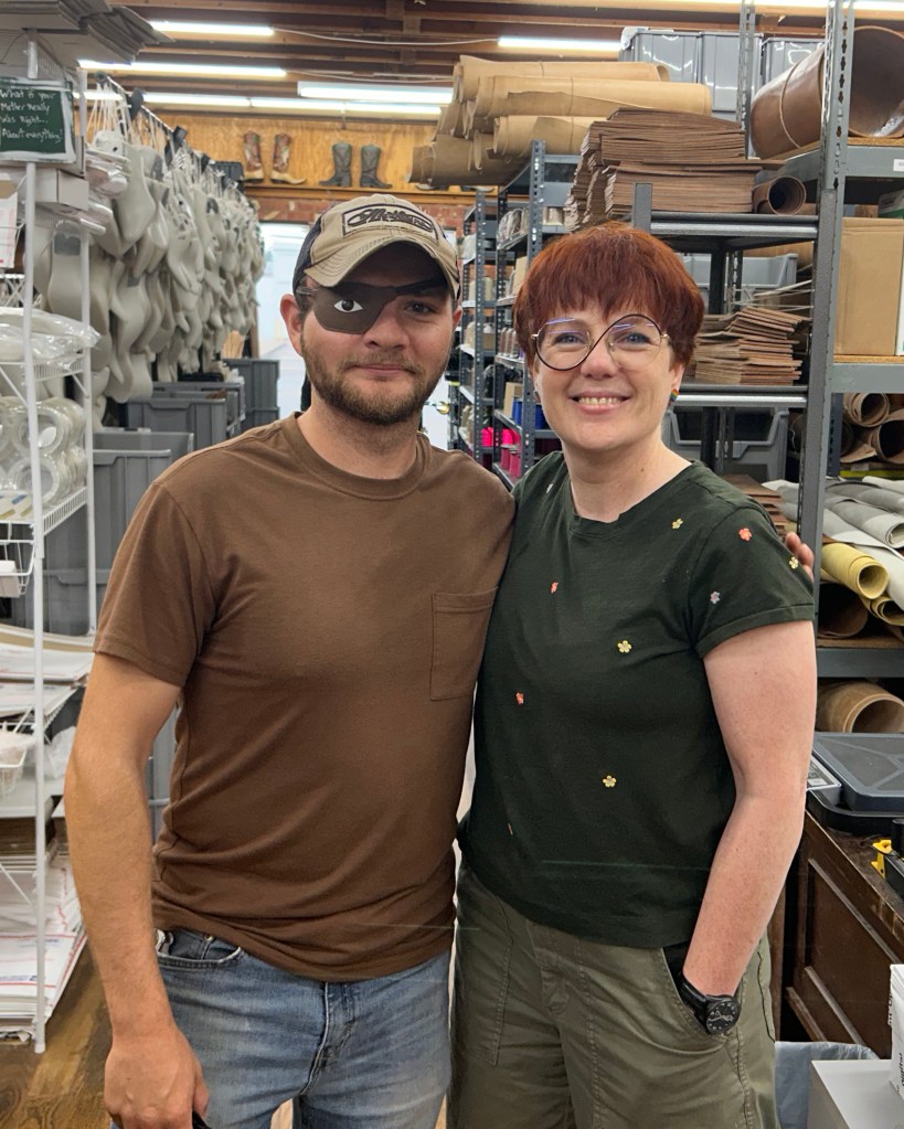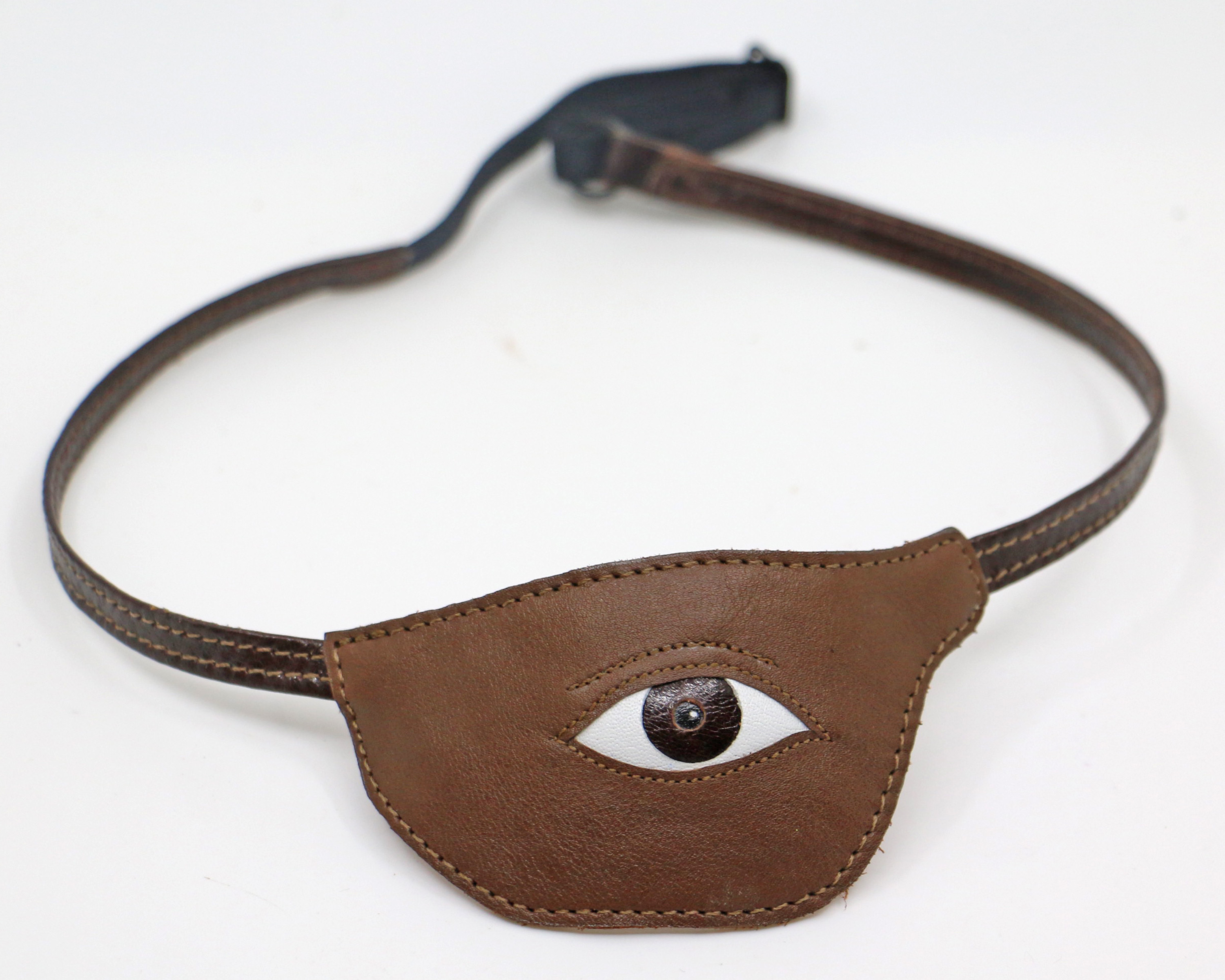 My friend Michael lost his eye in a car accident and I’ve been making him nice leather eye patches. Once I found out he had a sense of humor about it, I got creative.