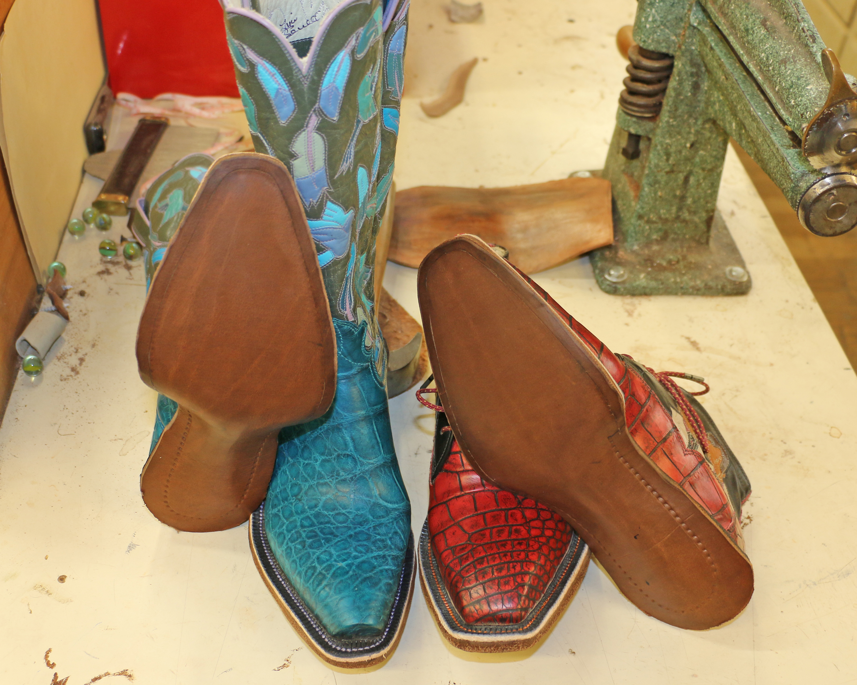 I stitched the turquoise boot soles with lavender thread and the red boot soles with burnt orange thread.