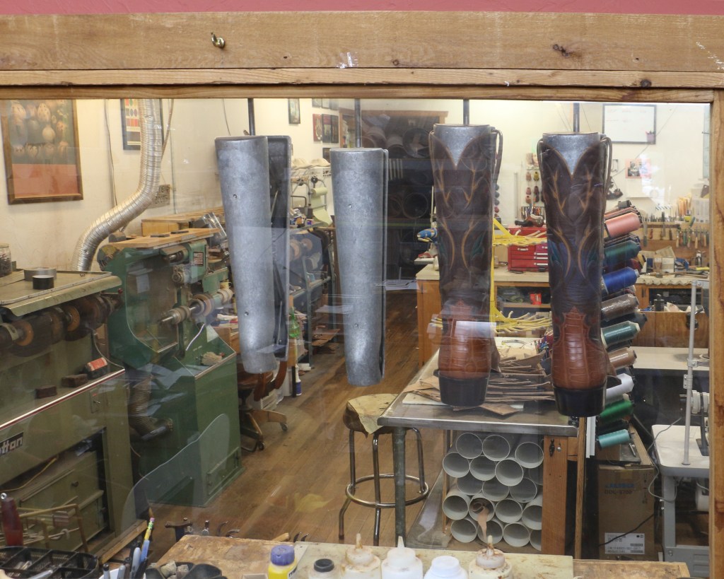 I finished a pair of boots today and they’re hanging in my shop window on the boot trees.
