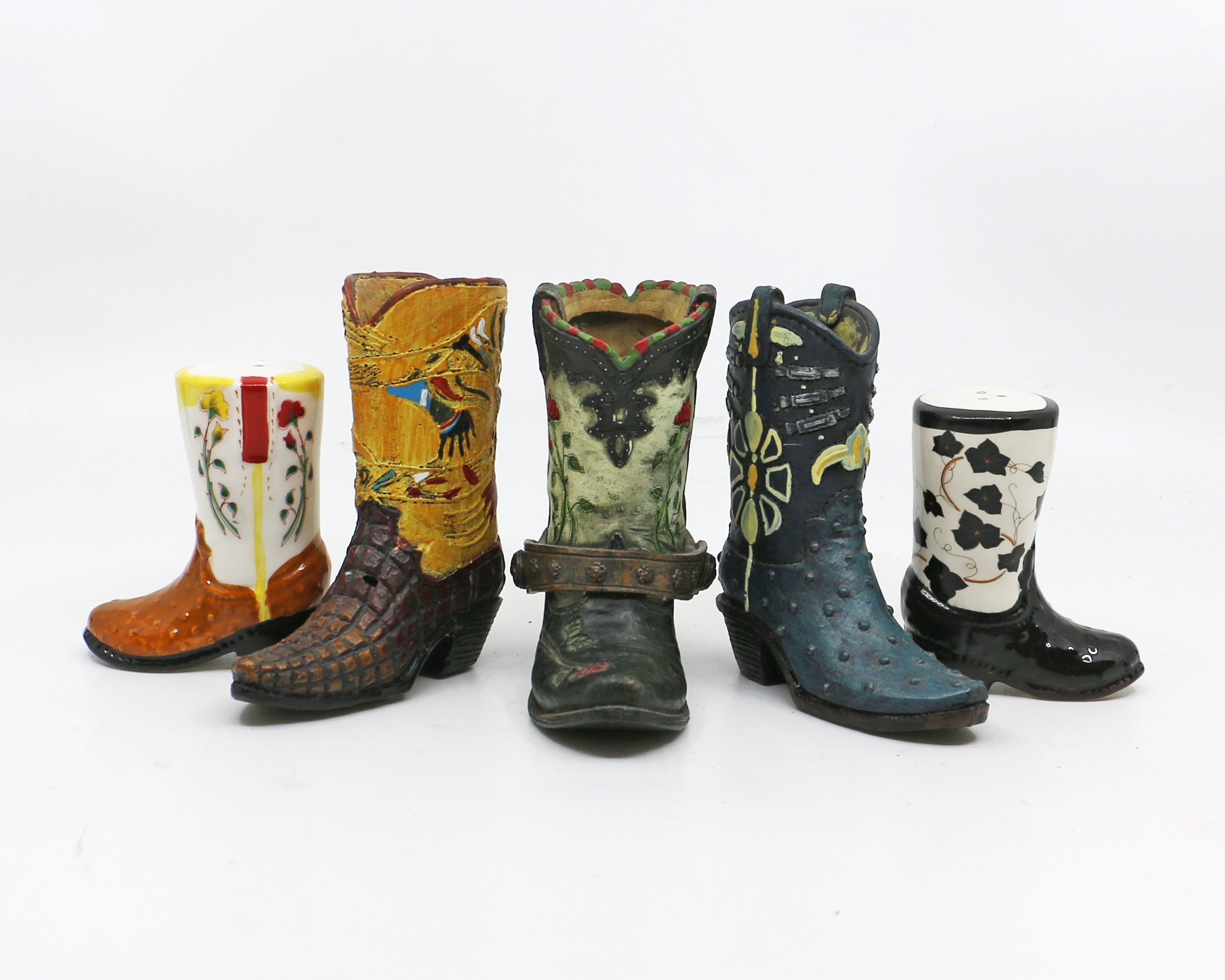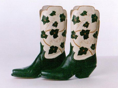 Just for fun, here’s a photo of my little collection of tchotchkes (that I had to purchase) which are reproductions of boots I’ve made, along with images of the actual boots.