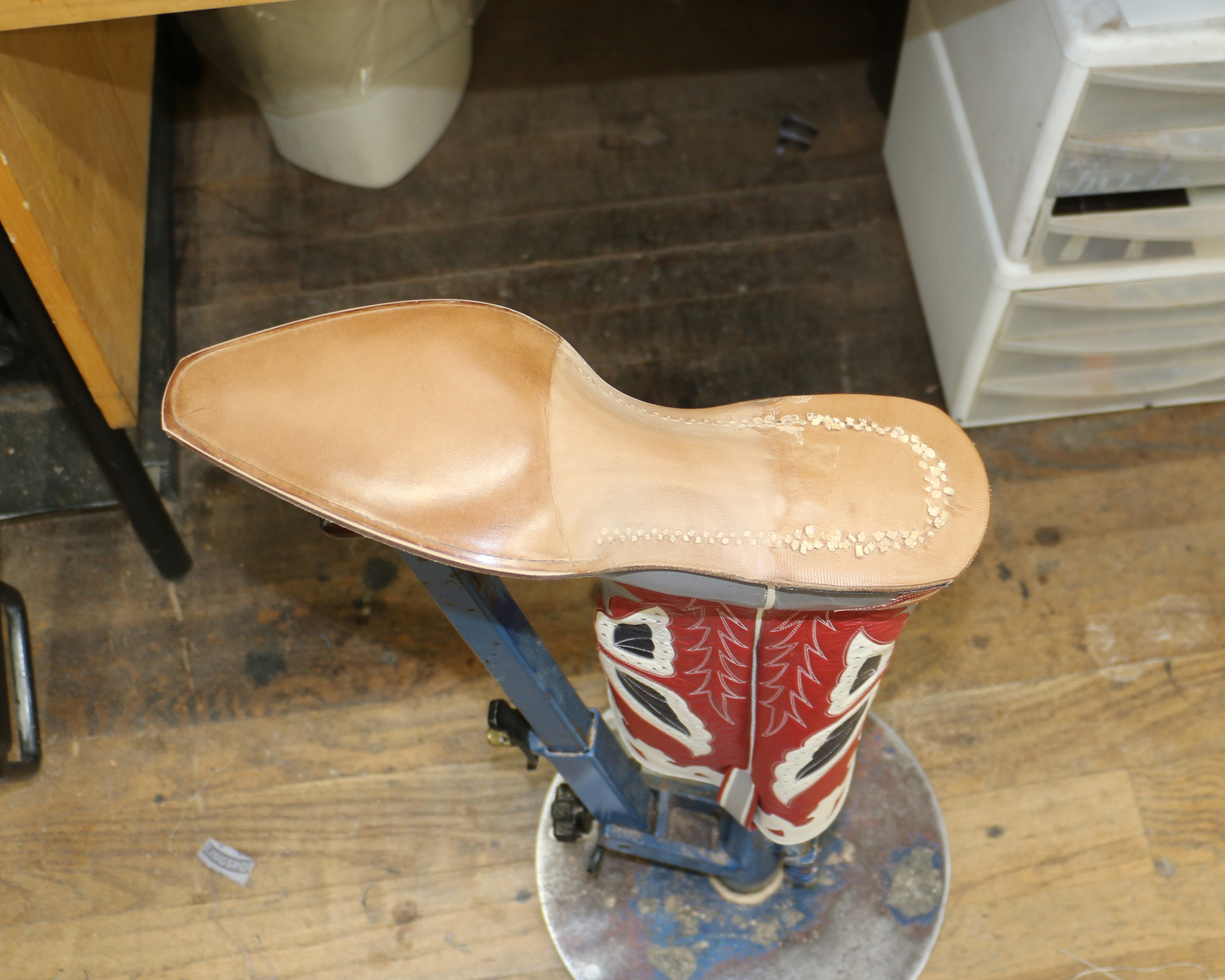 I'm a custom cowboy boot maker. I own a business, Sorrell Custom Boots, and I create bespoke cowboy boots using vintage machinery and hand tools. I also own www.sorrellnotionsandfindings.com, a company that specializes in tools, supplies, and leather for the boot and shoe making trade.