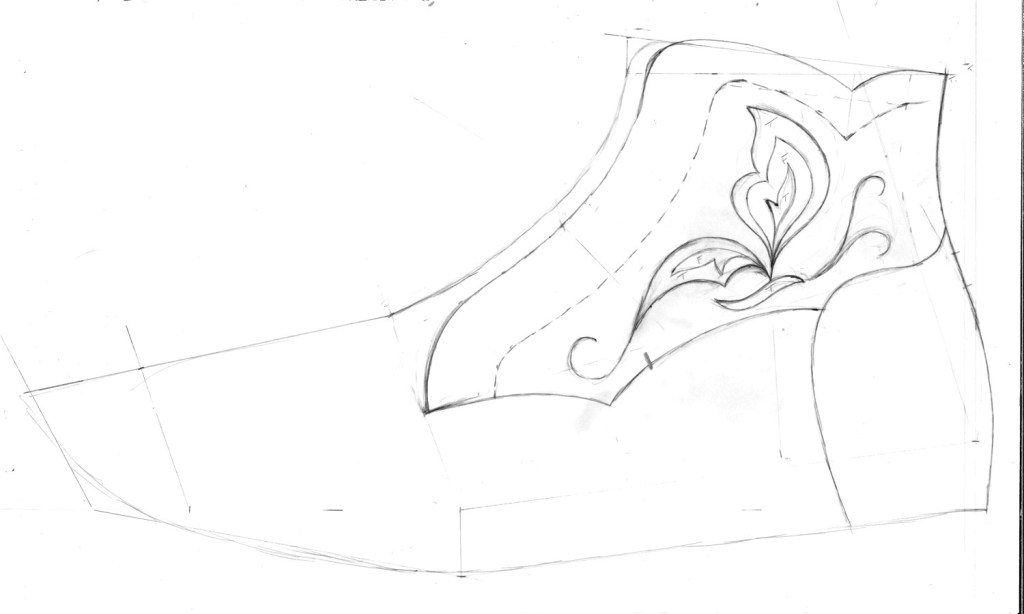 Possible design for a new pair of shoes, submitted to client for approval. Patterning shoes is still really difficult for me but my brain celebrates thinking about patterns and creating patterns and seeing the geometry behind patterns and… everything about making patterns.