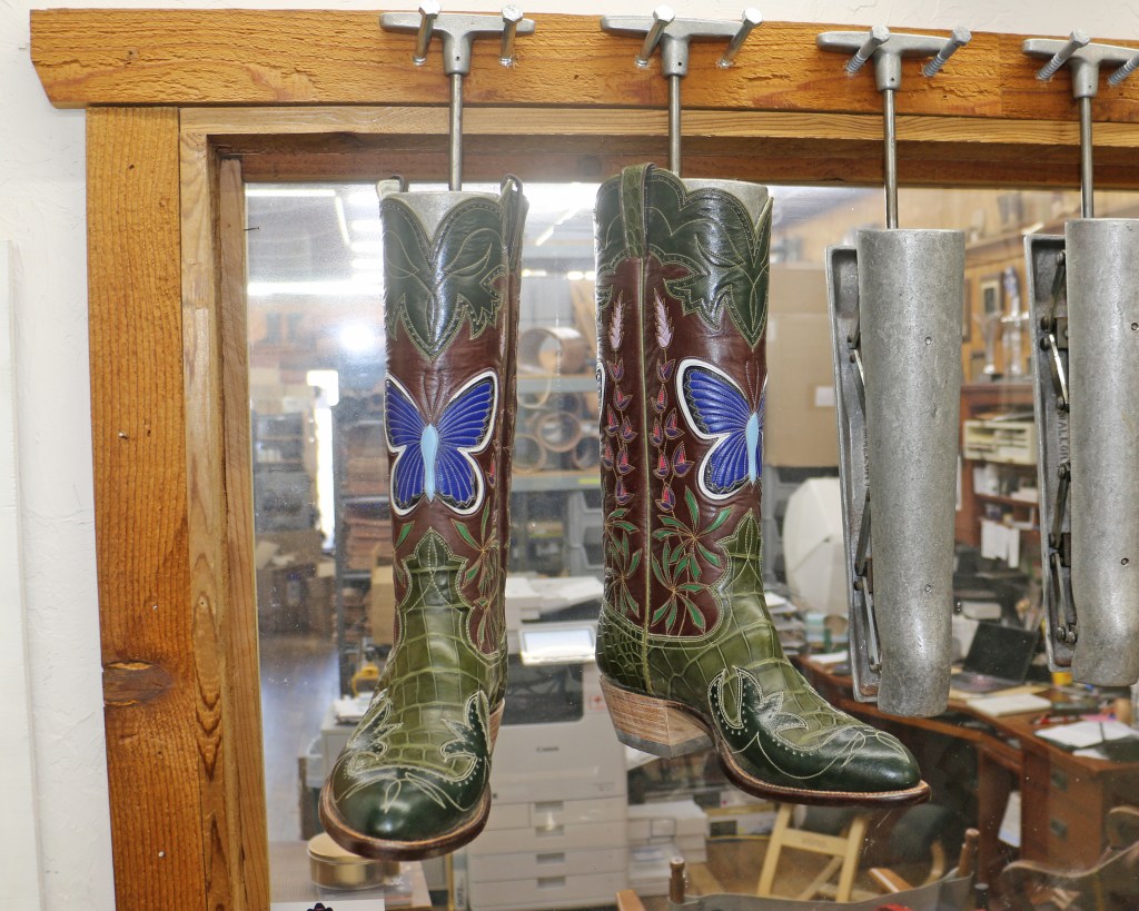 I almost finished the Karner Blue butterfly boots today, but now I have to head back to West Virginia to pick up my mother. She fell and broke her hip three weeks ago on a trip out there, and since she’s strong and healthy it’s time to bring her back home to Missouri. Holly will be here entering orders and packing boxes, and I’ll be back next week!