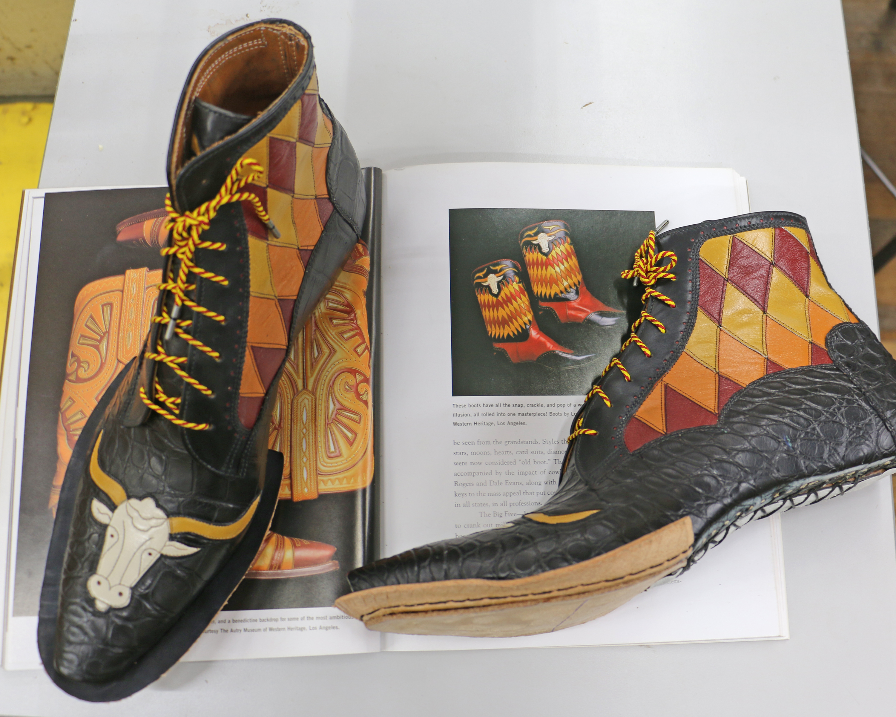 The boots in the book (“Art of the Boot” by Tyler Beard) image were made by Lucchese; Gene Autry had a pair although the boots in the image aren’t his. I have always particularly disliked them, so one day I thought, “I wonder if I’d like them better if I used them as inspiration for a shoe?!?”