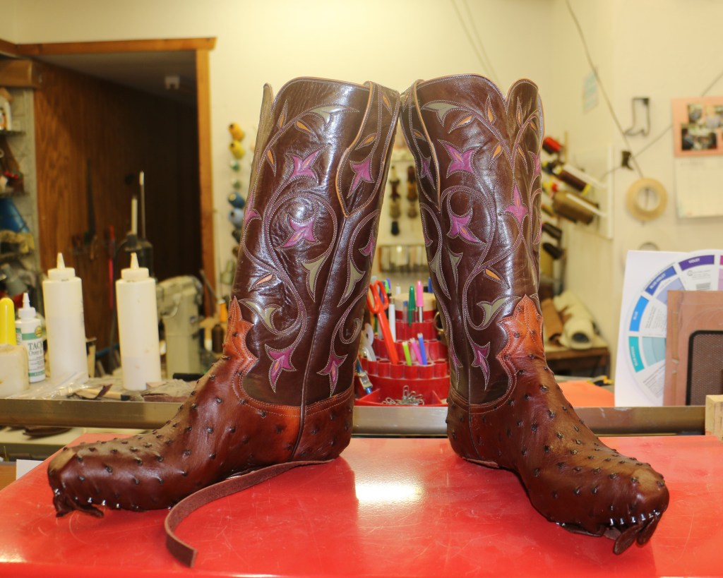 I got these boots on the last this morning. The lighter patches on the foot are the actual leather color; cowboy boots are wet-lasted and so the darker color simply indicates that the leather is still wet. I wet the leather thoroughly before putting the boots on the last because the leather in a cowboy boot heel is very thick, and also the foot part has no seams to make it somewhat shaped like the last before lasting. The shape of a cowboy boot foot depends entirely on how well it’s molded around the last and how that last is shaped.